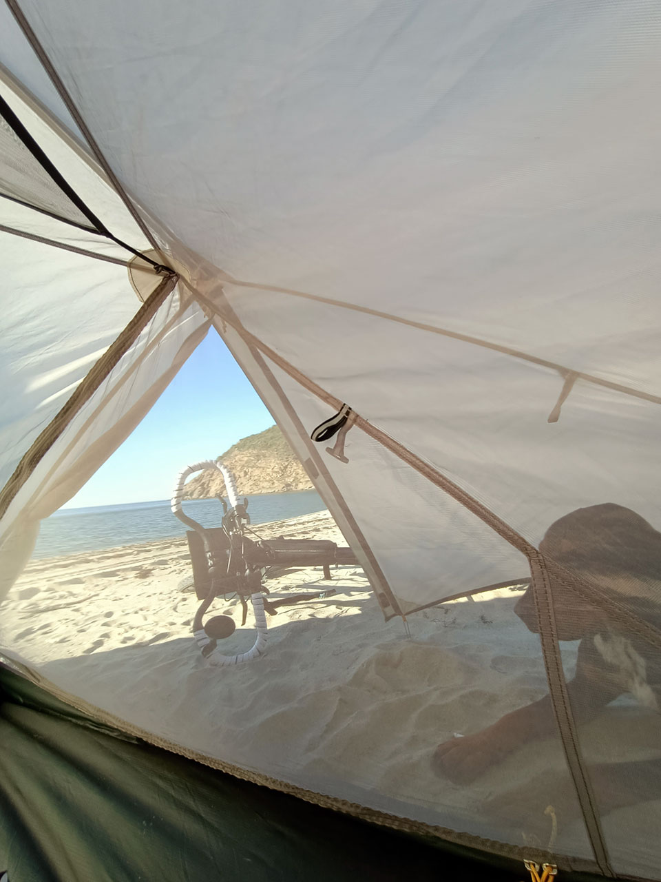 Saat 20.30’da uyumaya niyetlendim, henüz hava iyiydi çünkü biliyordum ki gece hava soğuyacak ve yine uykusuz kalacaktım. Önceki gün de uyuyamadığımdan saat 02.30’a kadar deliksiz uyumuşum ama o an soğuk resmen ısırarak uyandırdı beni. İki tişört, bir sweet, bir hırka ile hala üşüyordum. Yine tulumun içinde sağa sola dönmece… Sıkılınca saat beşe kadar sahilde dolanıp vakit geçirmeye çalıştım. Madem uyuyamıyorum en iyisi kahvaltı edip, sürüp ısınmak diye düşündüm ve 06.00 gibi çıktım yola.