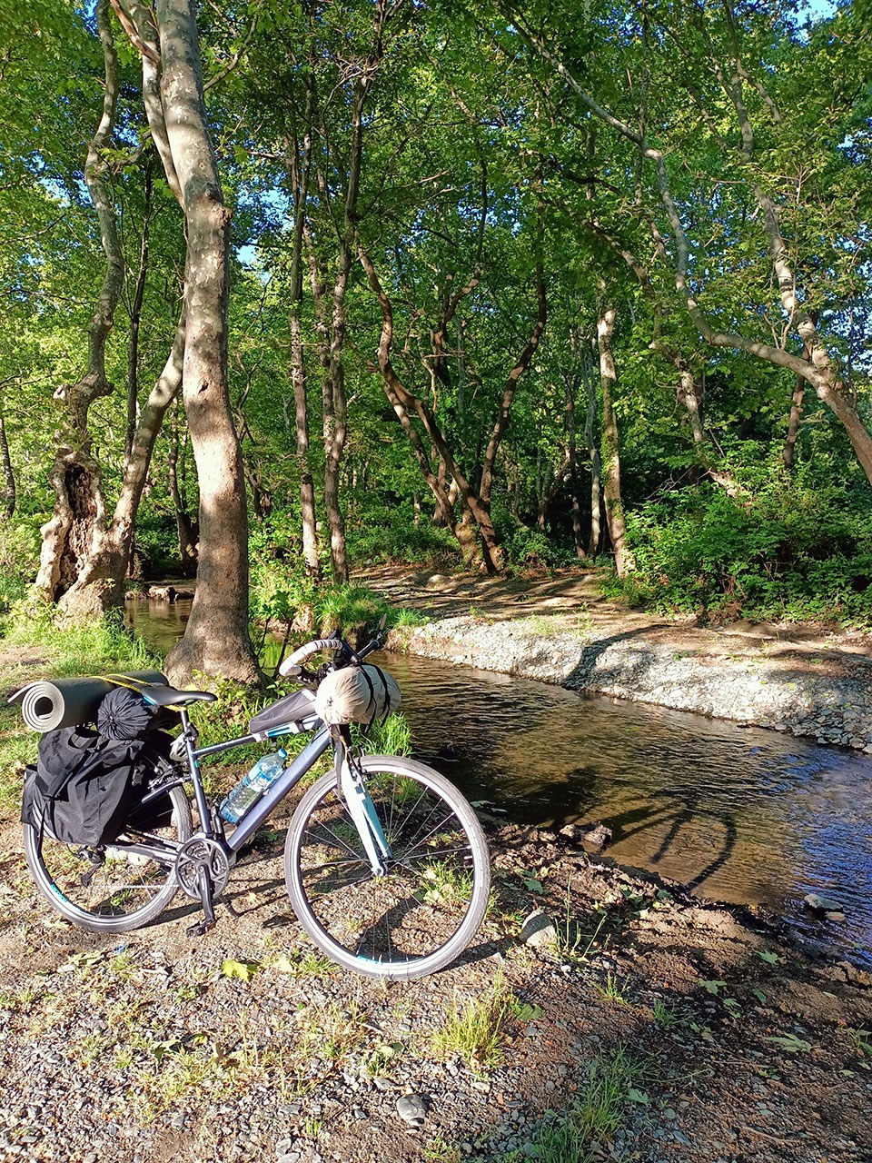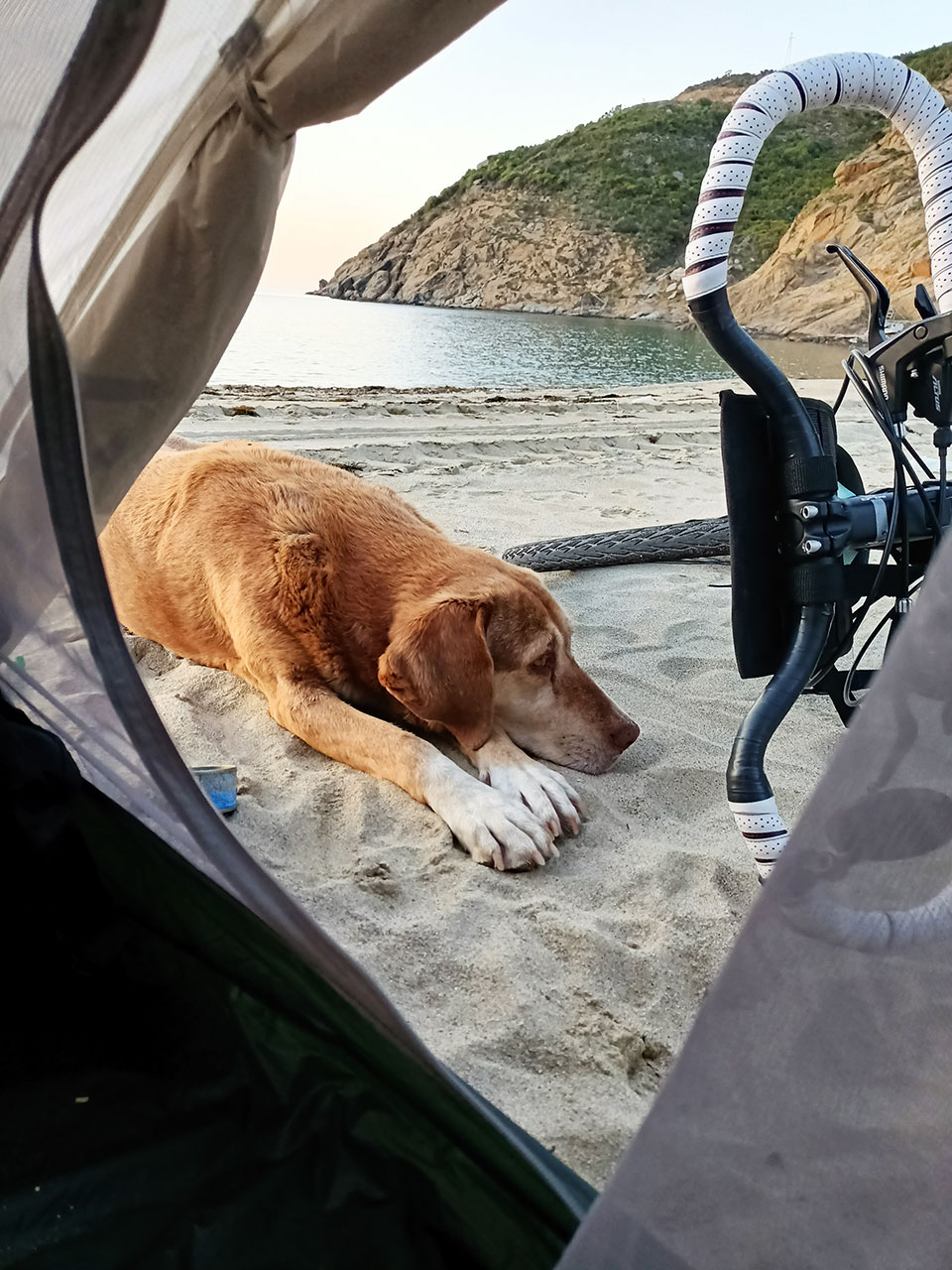 Tekirdağ’dan çıkarken tüm yiyecek alışverişini yapmıştım. Çadırı kurup yerleştikten sonra makarna ile günü geçiştirdim. Tam yemeye başlayacakken iki köpek dostum yemeğe ortak oldu. Bir ben, bir o, bir diğeri derken sofradan herkes aç kalktı. Yatmak için çadıra girmeden önce bisikleti çadırın yanına aldım ve tedbiren çadırın polüne kilitledim. Hırsızı durdurmaz, ama en azından belki gürültü çıkar da uyanırım diye içim biraz rahattı.