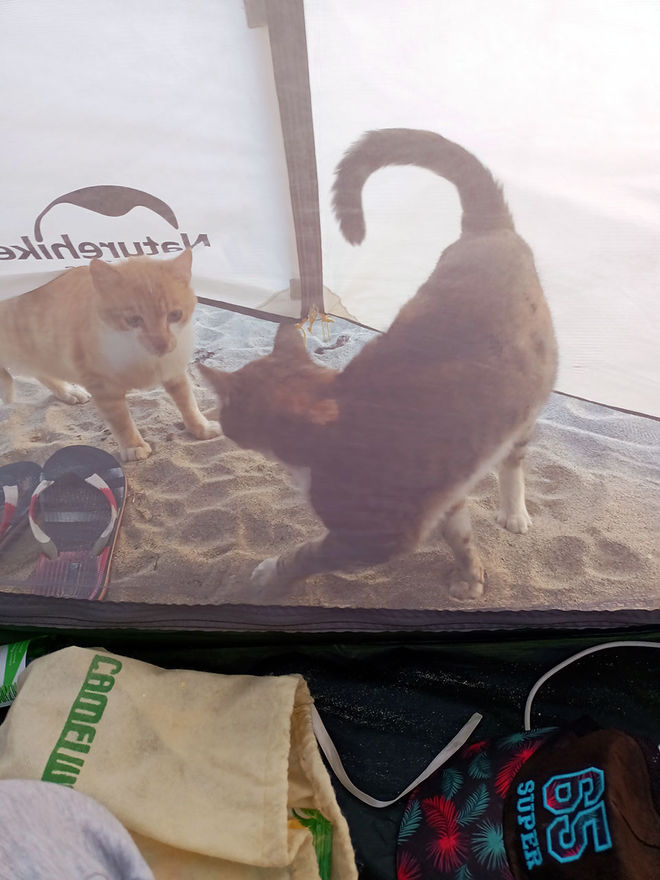 Sohbetten sonra çadırıma çekilip yemek yapmaya başladım. Yine makarna ama bu sefer ton balığı da koydum içine ve yine tam yemeye başlarken önce bir sonra bir tane daha köpek, ardından önce bir sonra bir tane daha kedi… Bu akşam dünkünden daha aç kaldım. Tabii şikayetçi değilim, bakmayın sitem eder gibi konuştuğuma. İmkanım varsa beraber yeriz, yoksa aç kalırız.  Kediler yiyip kaçtı ama köpekler sabaha kadar çadırın yanında uyudu.